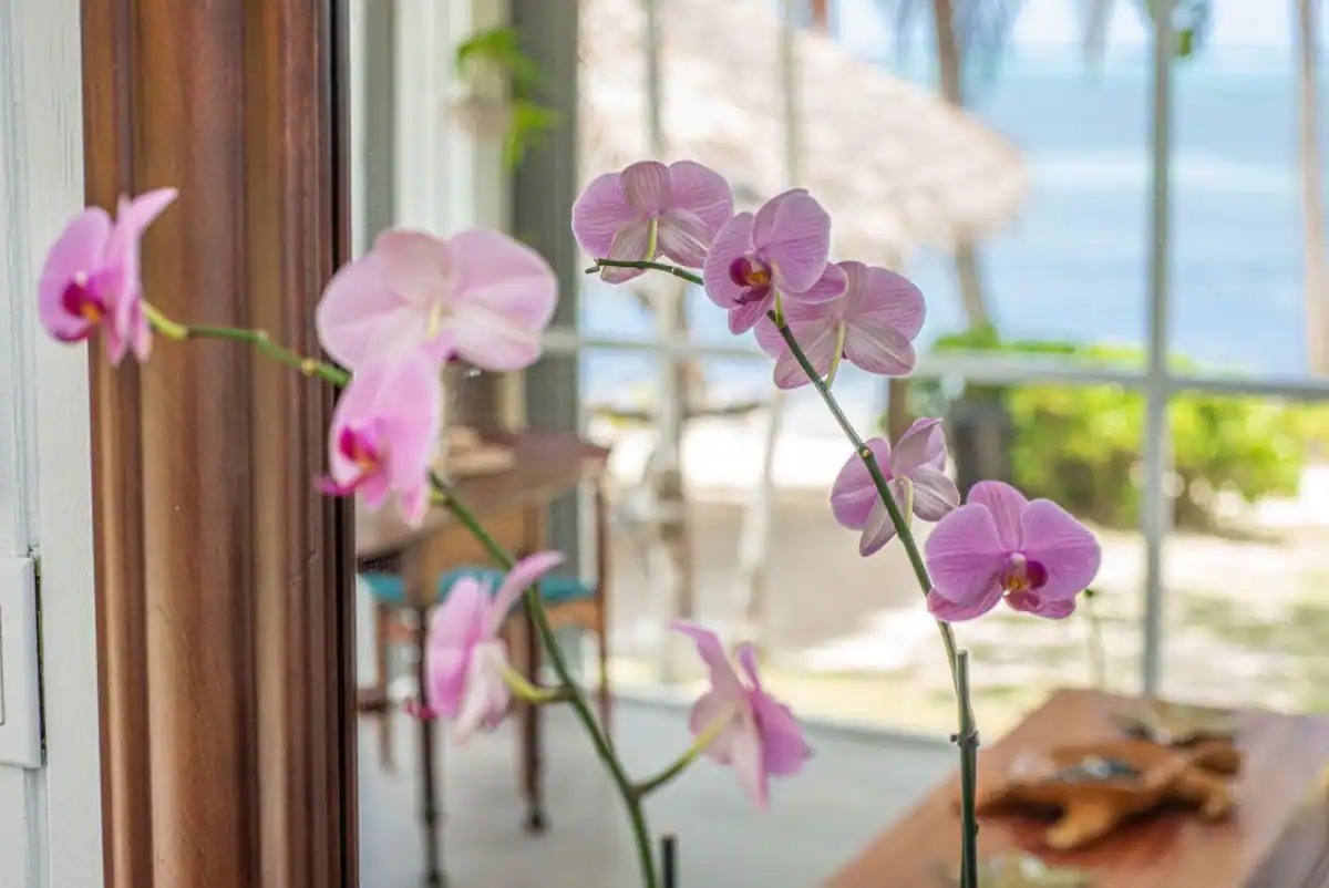 The cottage is surrounded by well-maintained gardens, home to wild birds and flowering orchid plants. All of this is set against the backdrop of a stunning beach view, complete with a beach gazebo and hammocks for your relaxation.